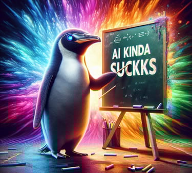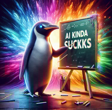 P.S. I have a confession to make. Remember that DALL-E generated penguin image I used to show that AI messes up text in images? Well, DALL-E actually didn't mess up. I tried several times to get it to do so, but it kept giving me the right text ("AI KINDA SUCKS"). So I gave up and told it to generate an image that said "AI KINDA SUCKKS" - which it did correctly, first try. A year ago, it almost certainly would've messed up. But now, it works flawlessly. Take from that what you will.
