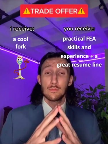 We were introduced to a software called Abaqus and began learning how to go through the whole FEA pipeline - and eventually, how to automate it all using Python scripting. By the end of the Fall 2022 semester, I had put together a full-blown fork script - from modeling, all the way to analysis.